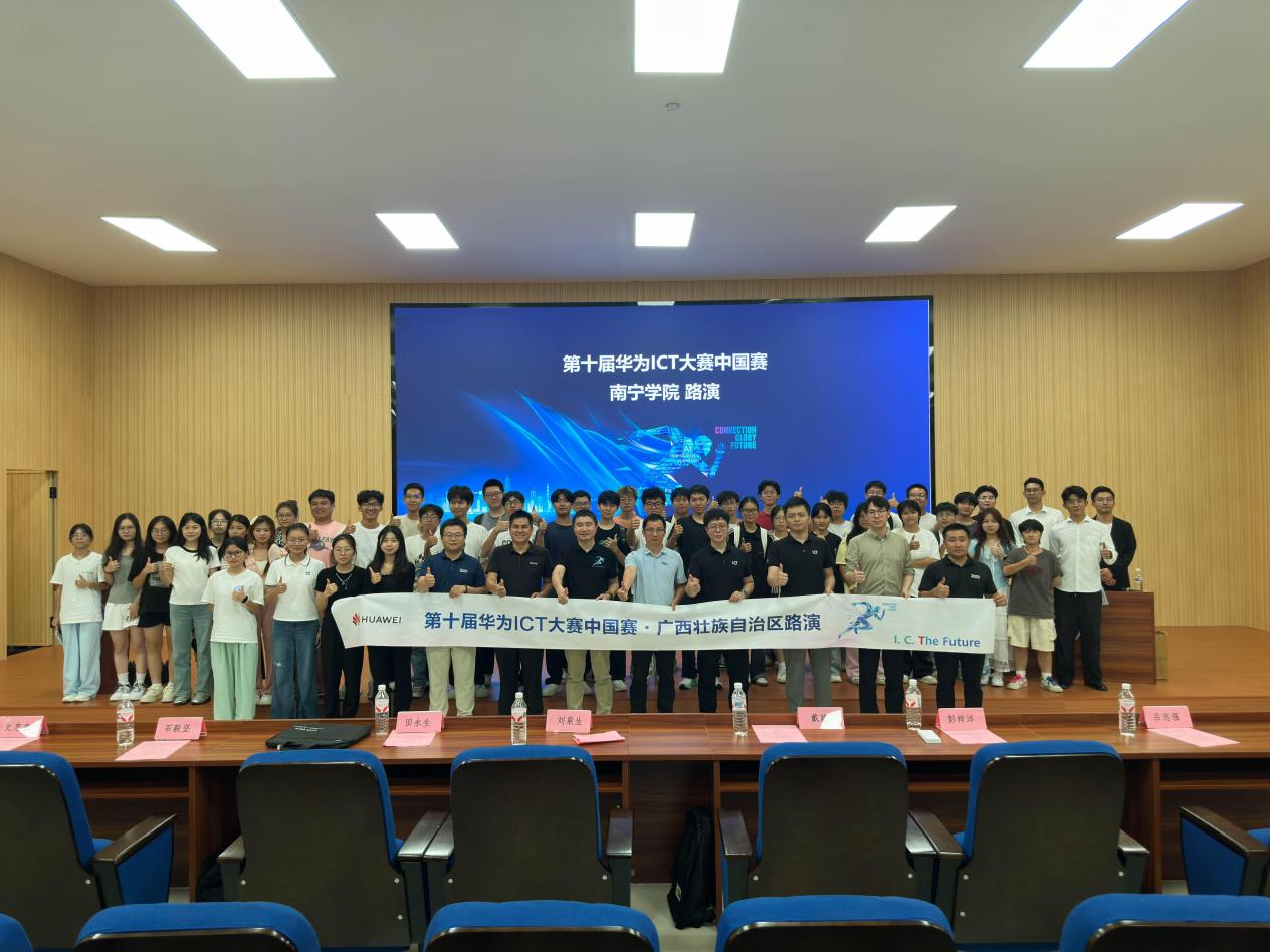2025年9月25日晚,第十届华为ICT大赛专场路演活动在南宁学院敷文园E-104教室成功举办。 路演活动由南宁学院、华为技术有限公司及广西塔易信息技术有限公司三方协同组织。